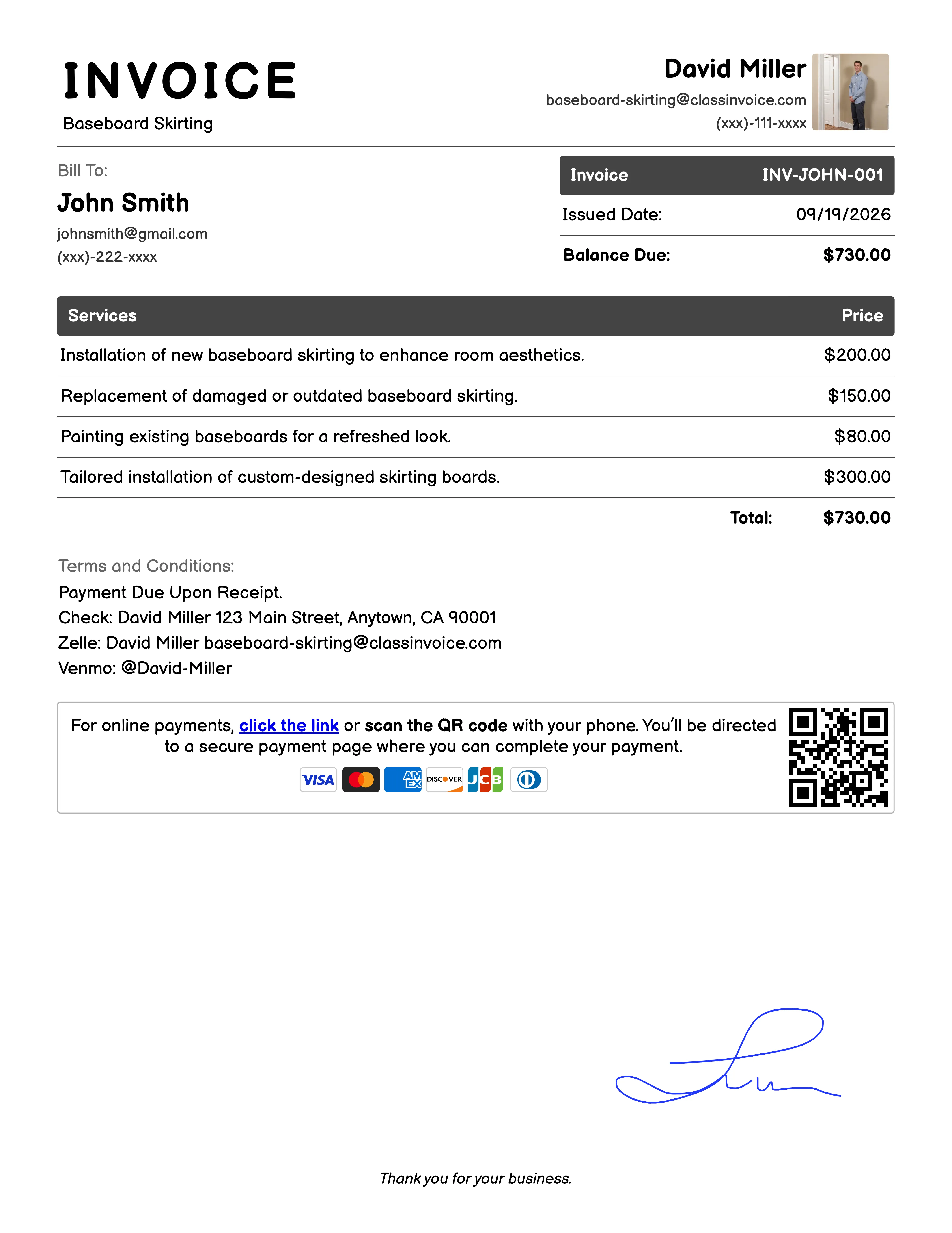 Free Baseboard Skirting Invoice Generator