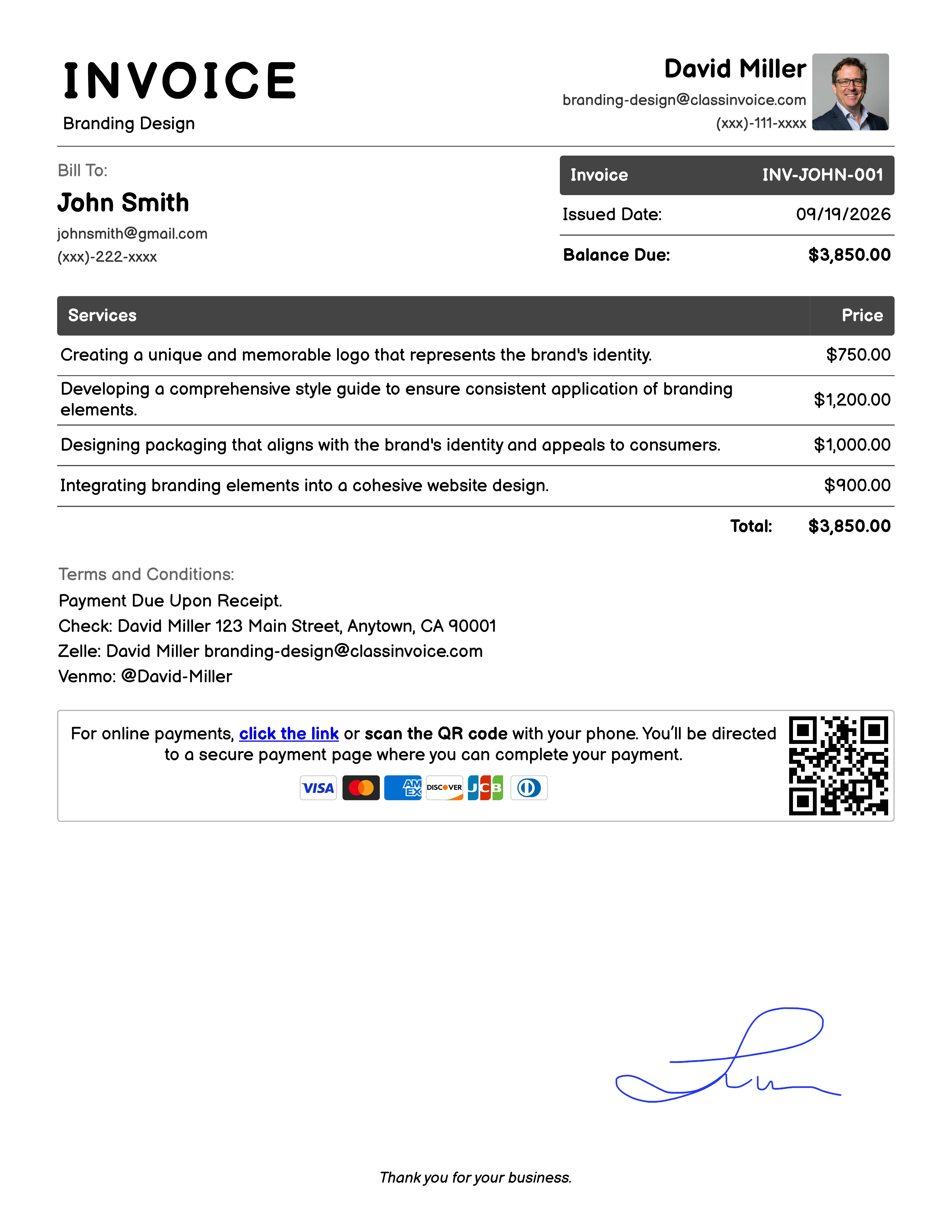 You can print your invoices directly from the invoice creation tool, or download them in PDF format for free.