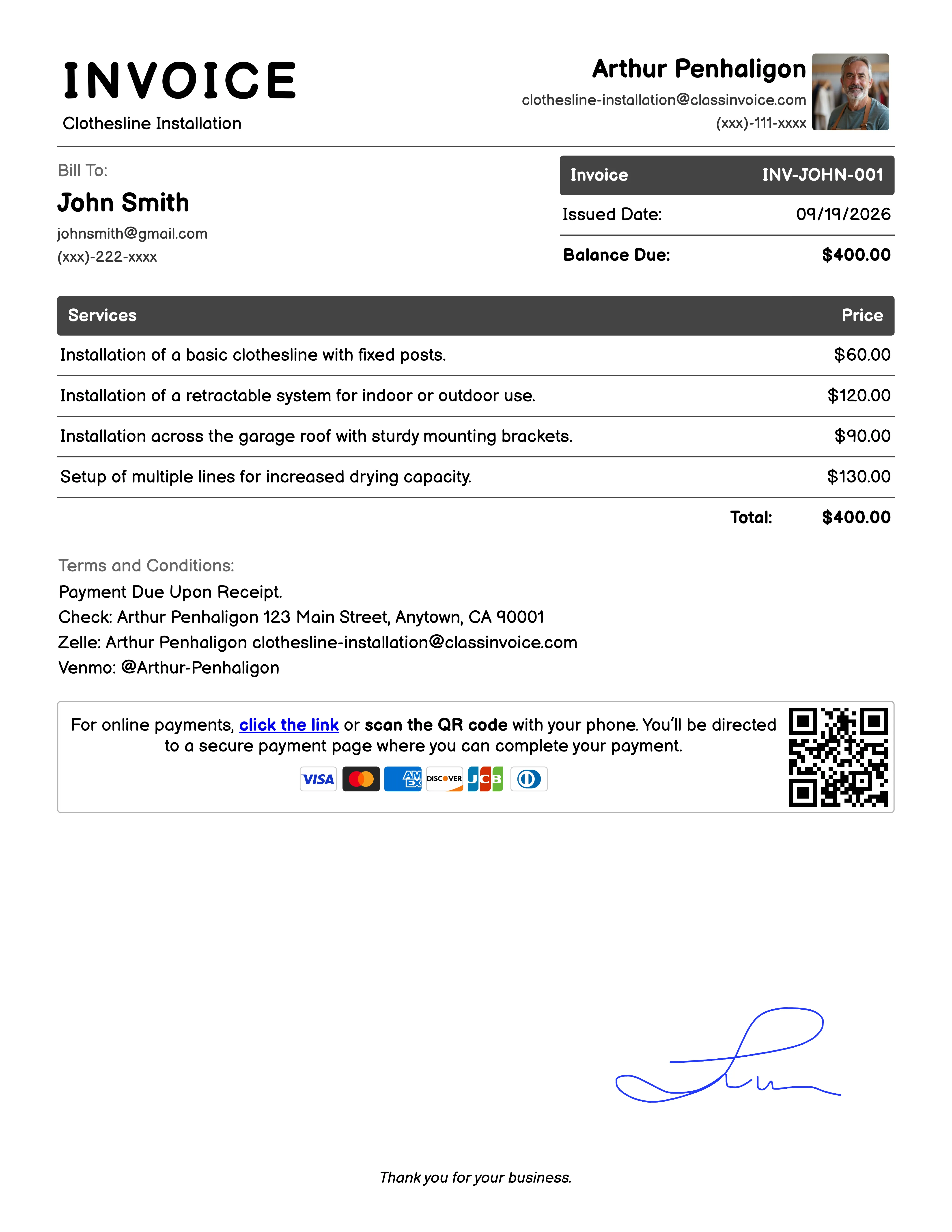 Free Clothesline Installation Invoice Generator