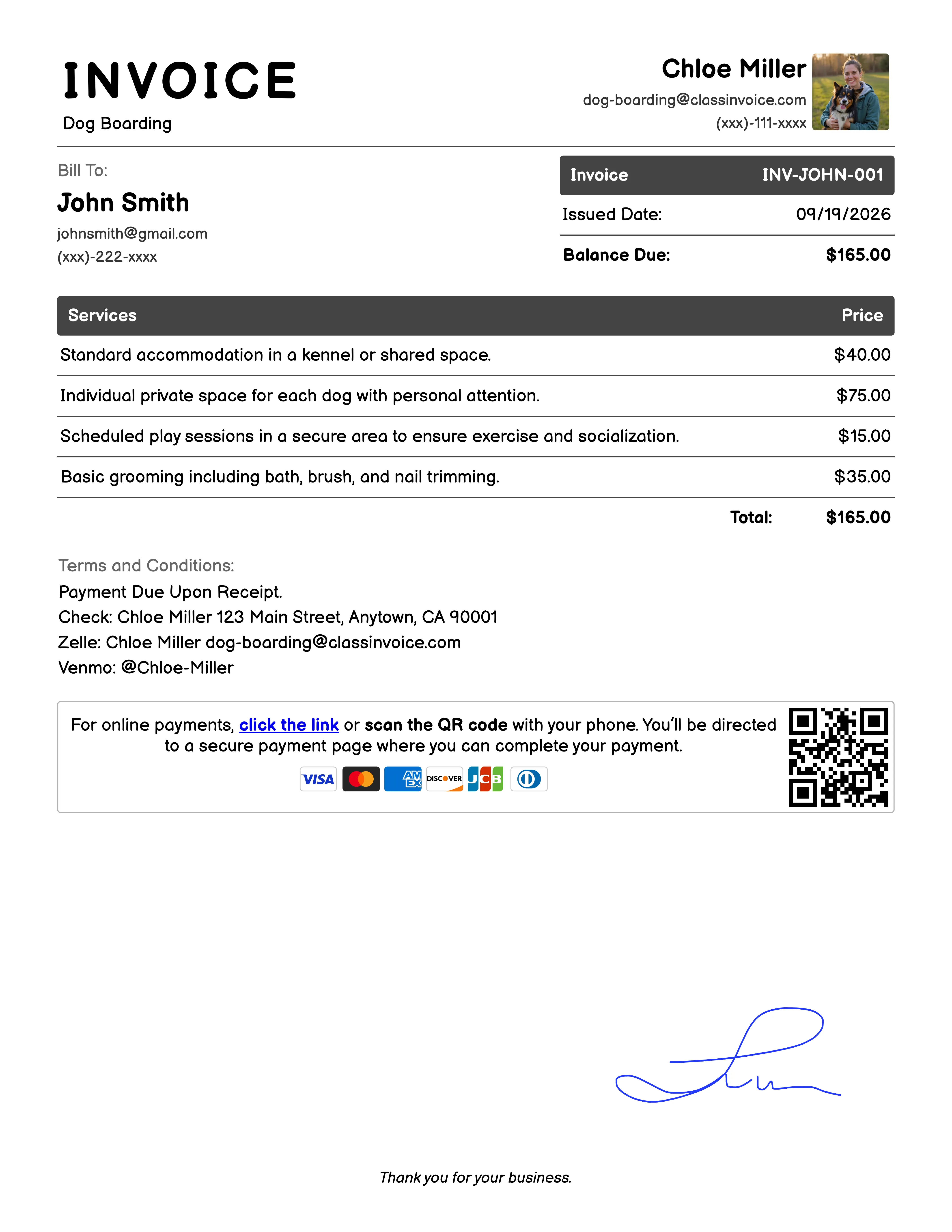 This service offers comprehensive dog boarding solutions, ensuring your pet's comfort and well-being. With options ranging from standard to premium accommodations, dogs receive daily exercise, meals, and personalized care plans. Additional services include grooming, training sessions by certified trainers, routine medical checkups, and emergency veterinary access. Special features like professional photography, spa treatments, custom diet plans, and social playdates enhance the boarding experience.