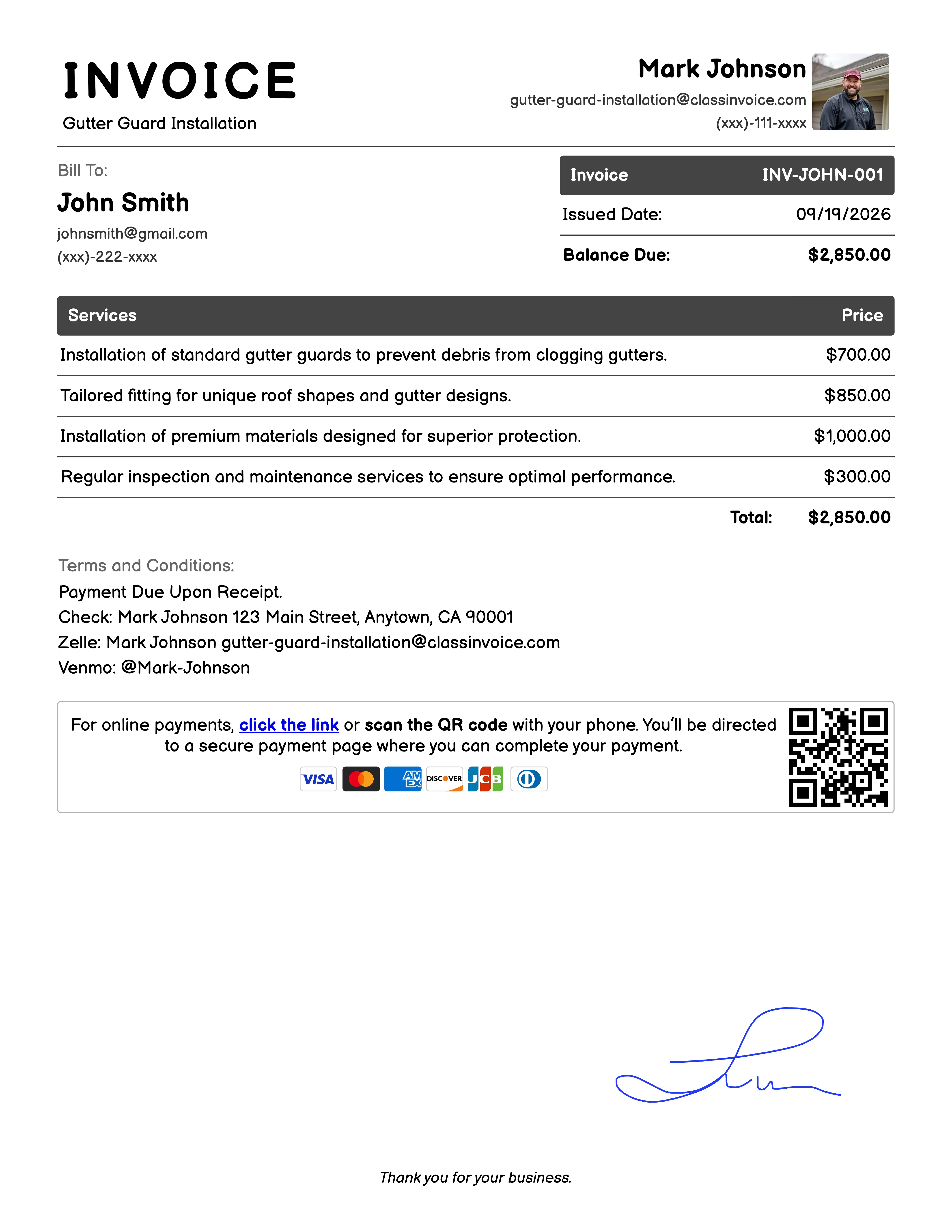 You can print your invoices directly from the invoice creation tool, or download them in PDF format for free.