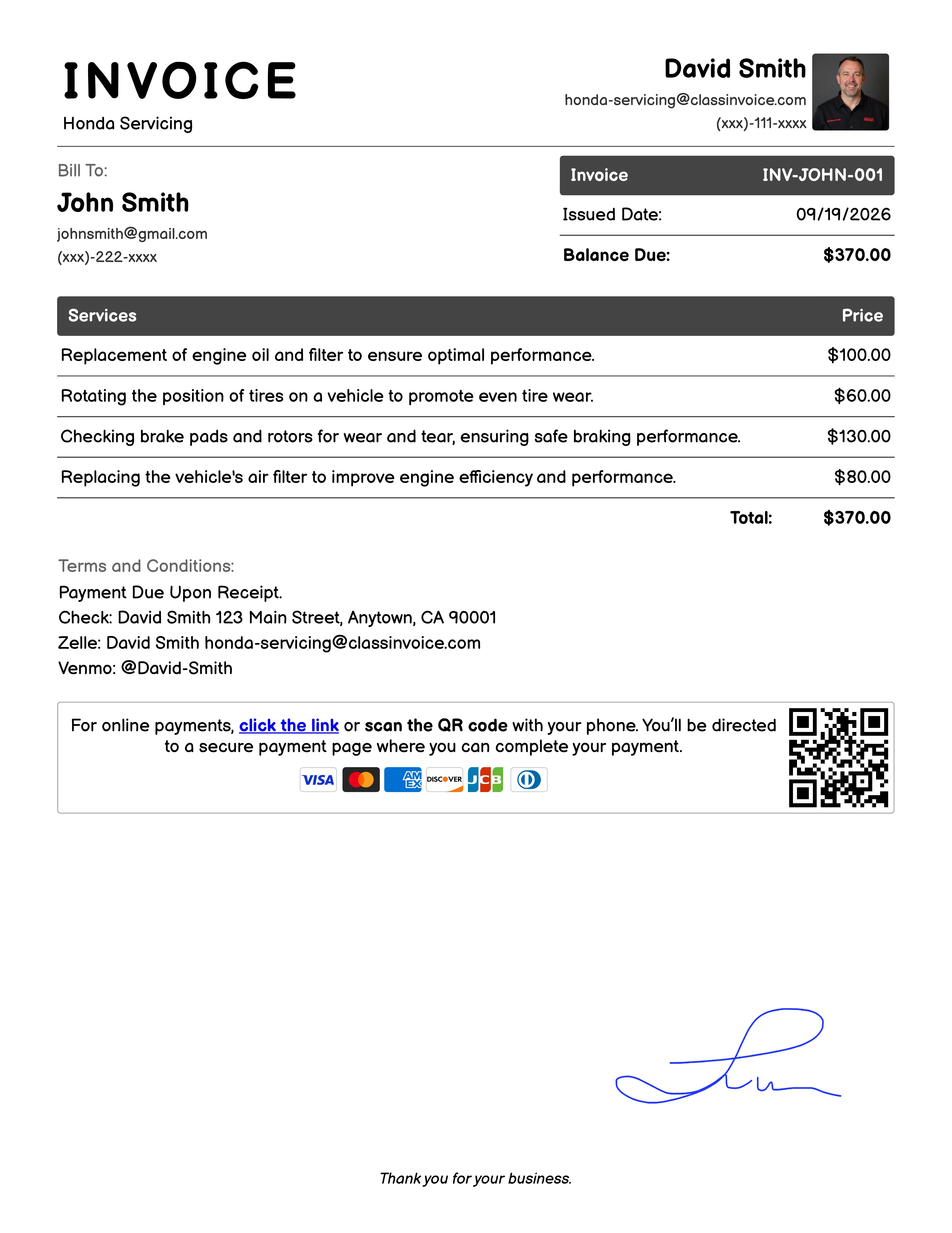 You can print your invoices directly from the invoice creation tool, or download them in PDF format for free.