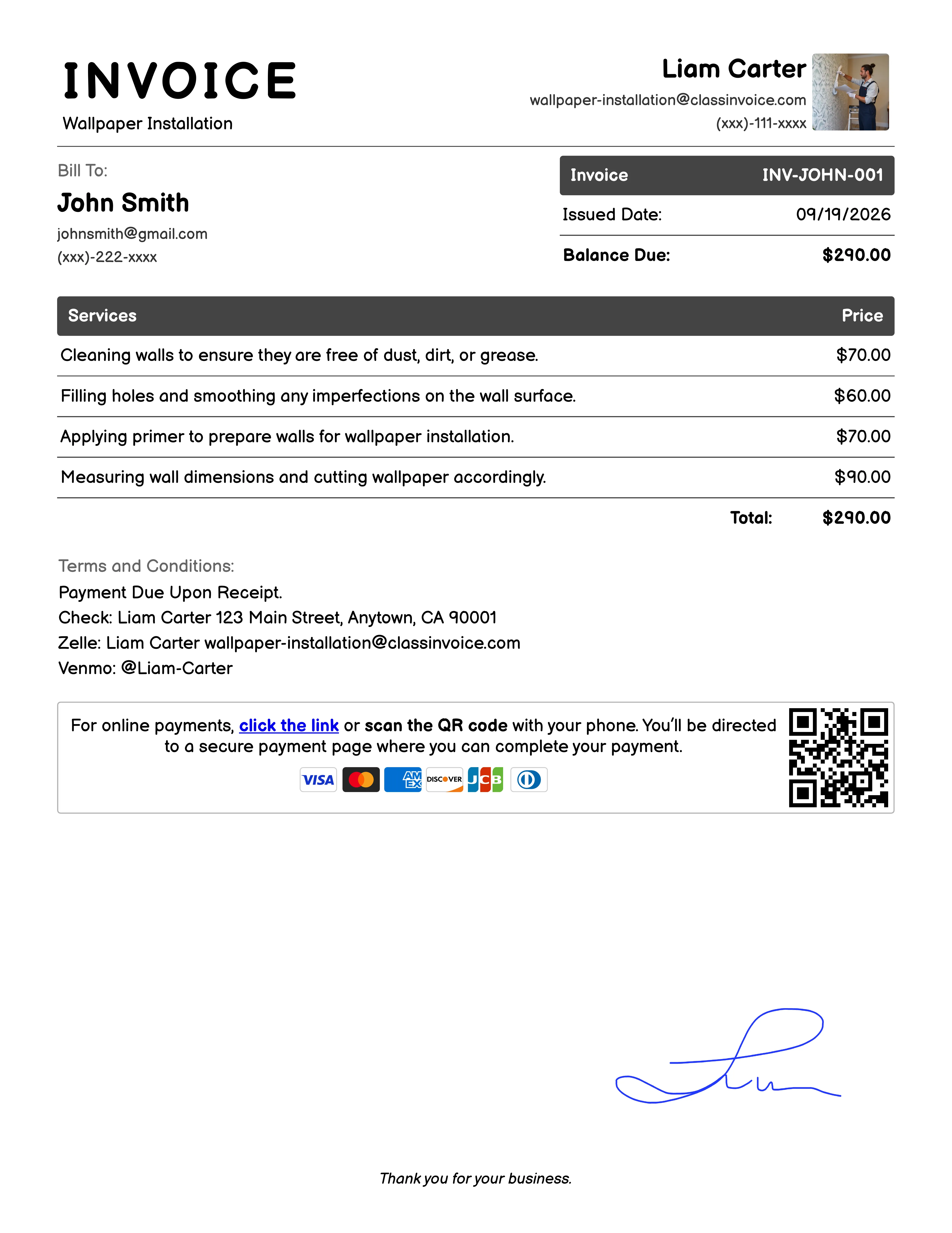 This service includes comprehensive steps for traditional wallpaper installation. It begins with preparing wall surfaces, followed by measuring and cutting wallpaper accurately. Adhesive application ensures wallpaper strips adhere smoothly. The process includes careful hanging, smoothing, and trimming for a flawless finish. Additional tasks cover crown molding, corner treatments, window/door frame alignment, and adjustments around fixtures/outlets. A final inspection ensures any necessary touch-ups are addressed. This detailed approach guarantees a professional and seamless installation.